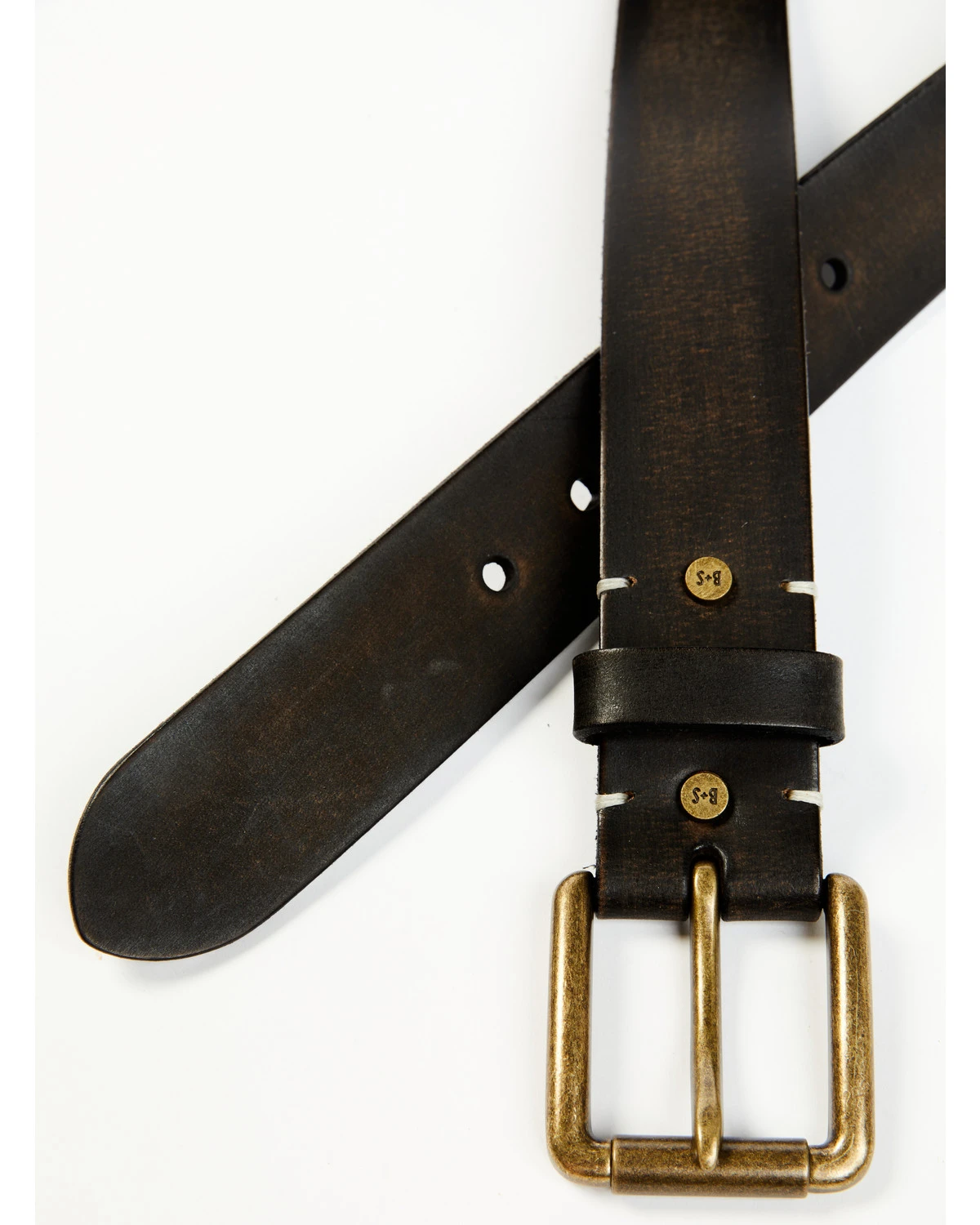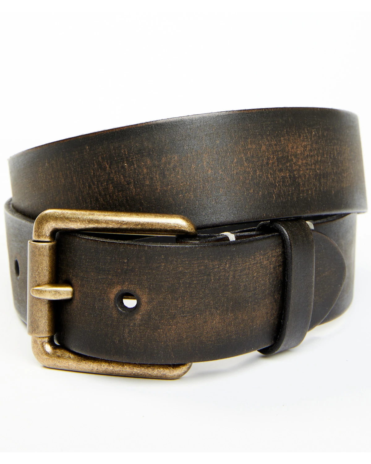Brother & Sons Men’s Distressed Leather & Brass Buckle Belt