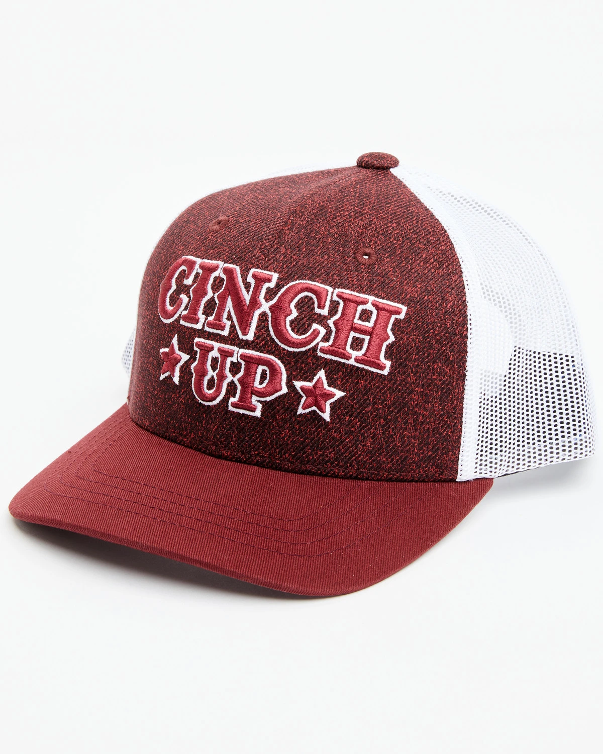 - Heather red front with white soft mesh back