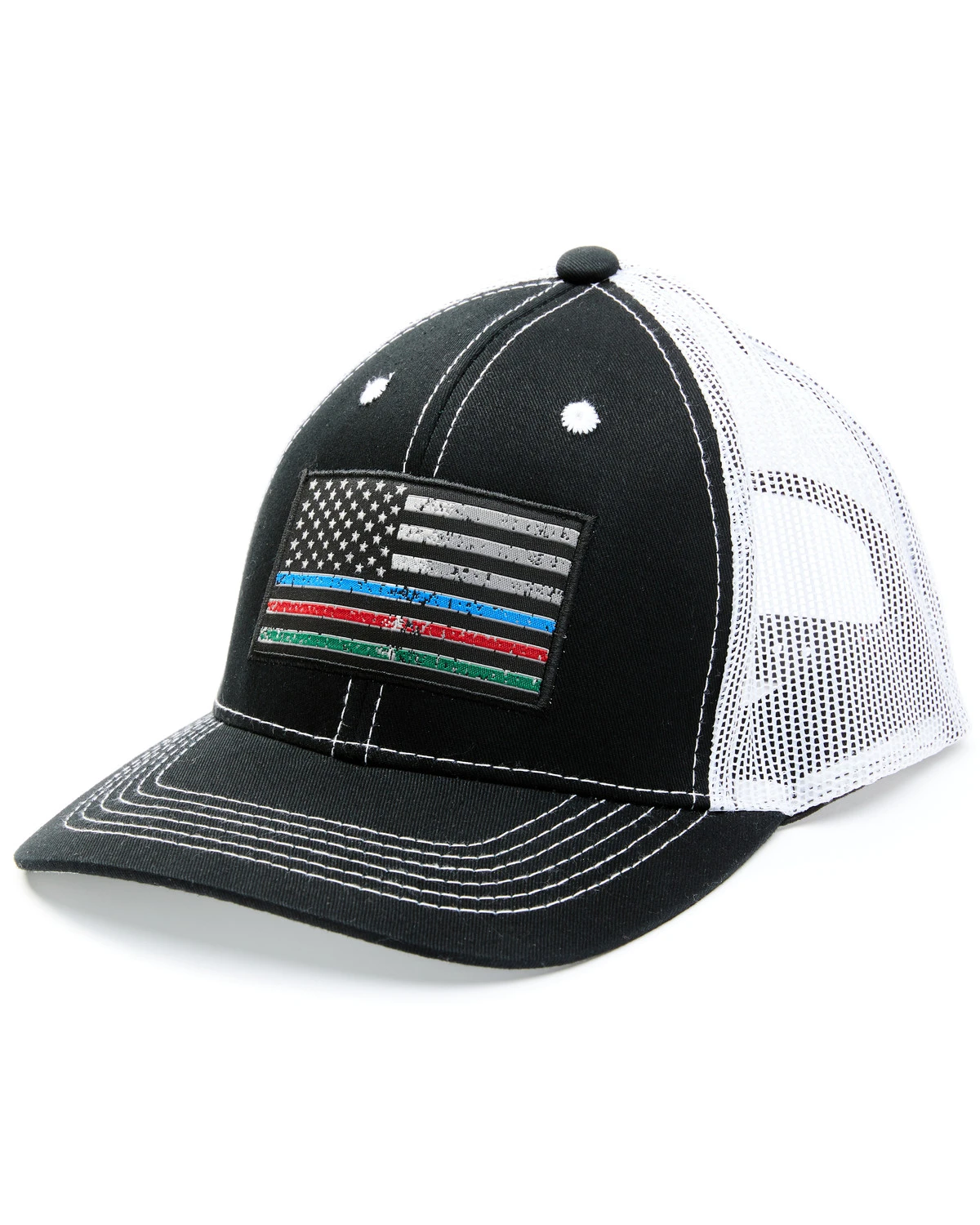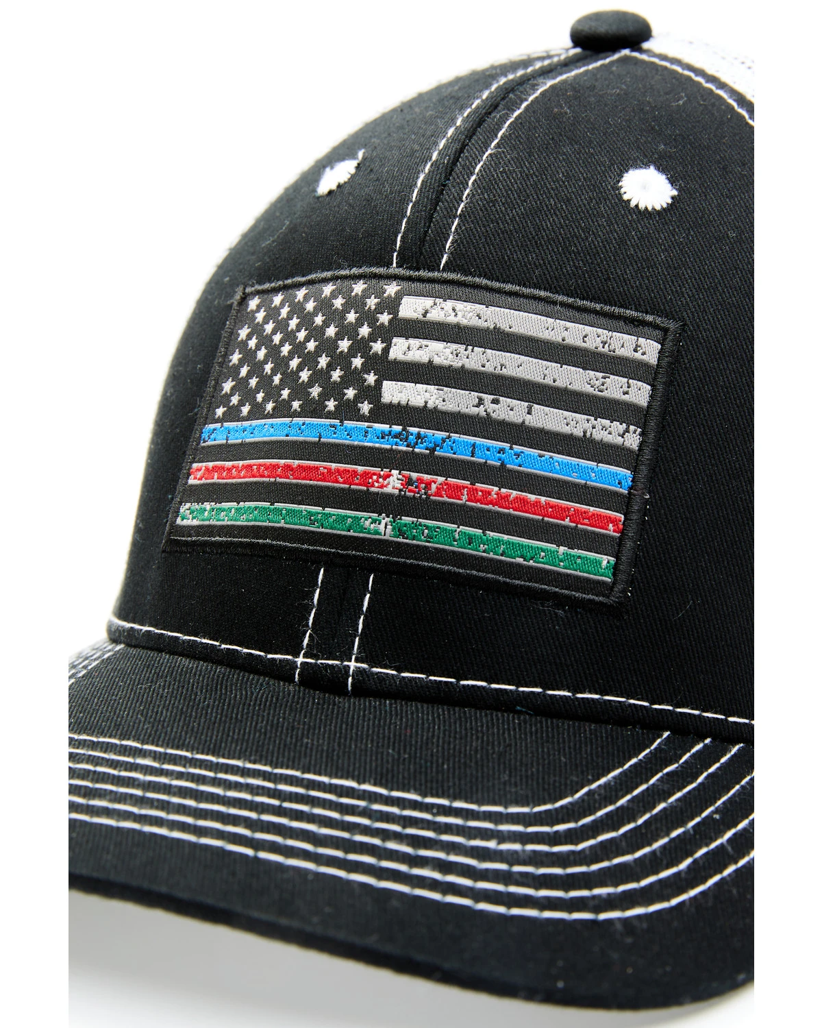 Justin Men’s Black Thin Line Embroidered Flag Mesh-Back Ball Cap