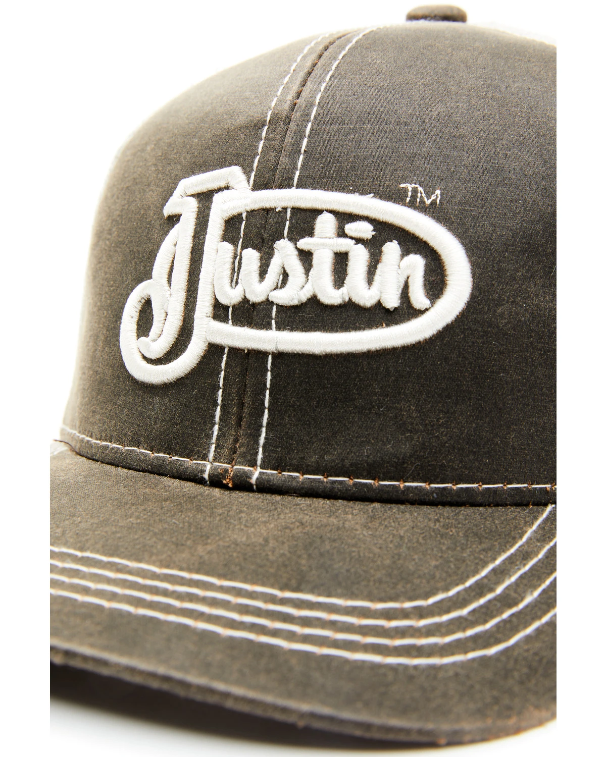Justin Men’s Brown Oilskin Embroidered Logo Mesh-Back Ball Cap