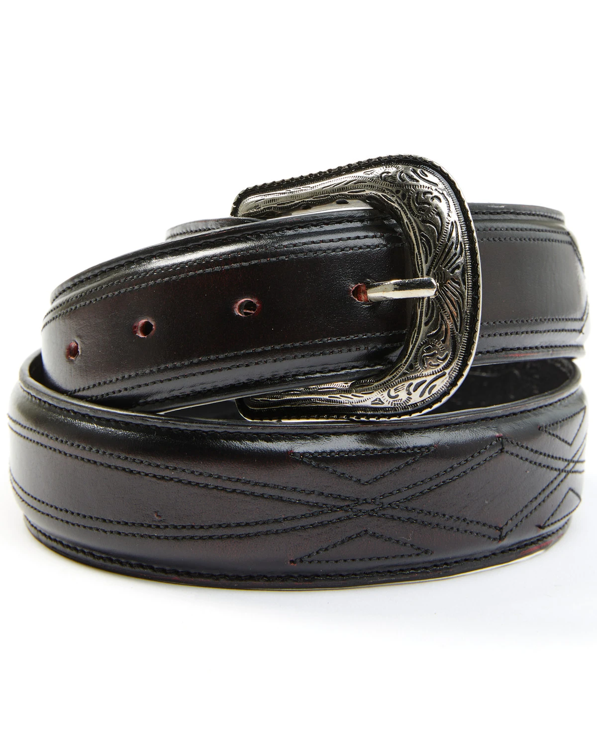 - Embossed square silver-tone buckle