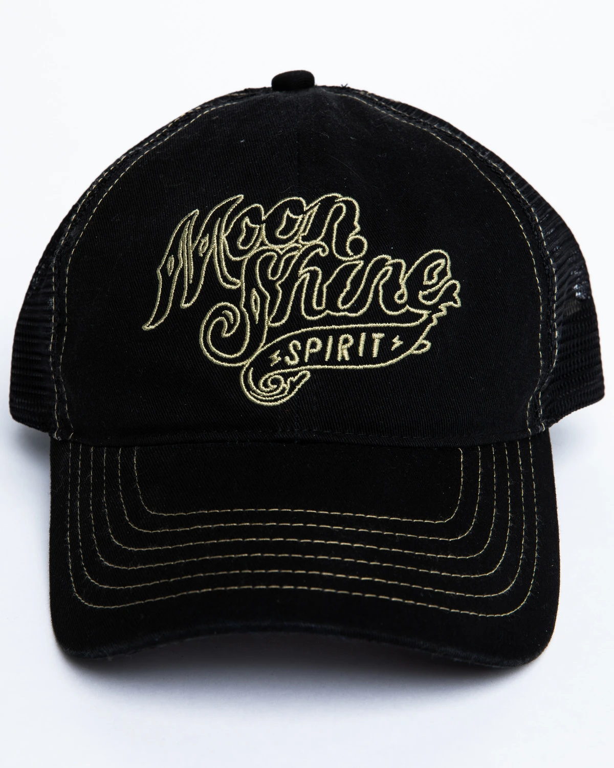 Moonshine Spirit Men’s White On Black Logo Print Mesh Ball Cap