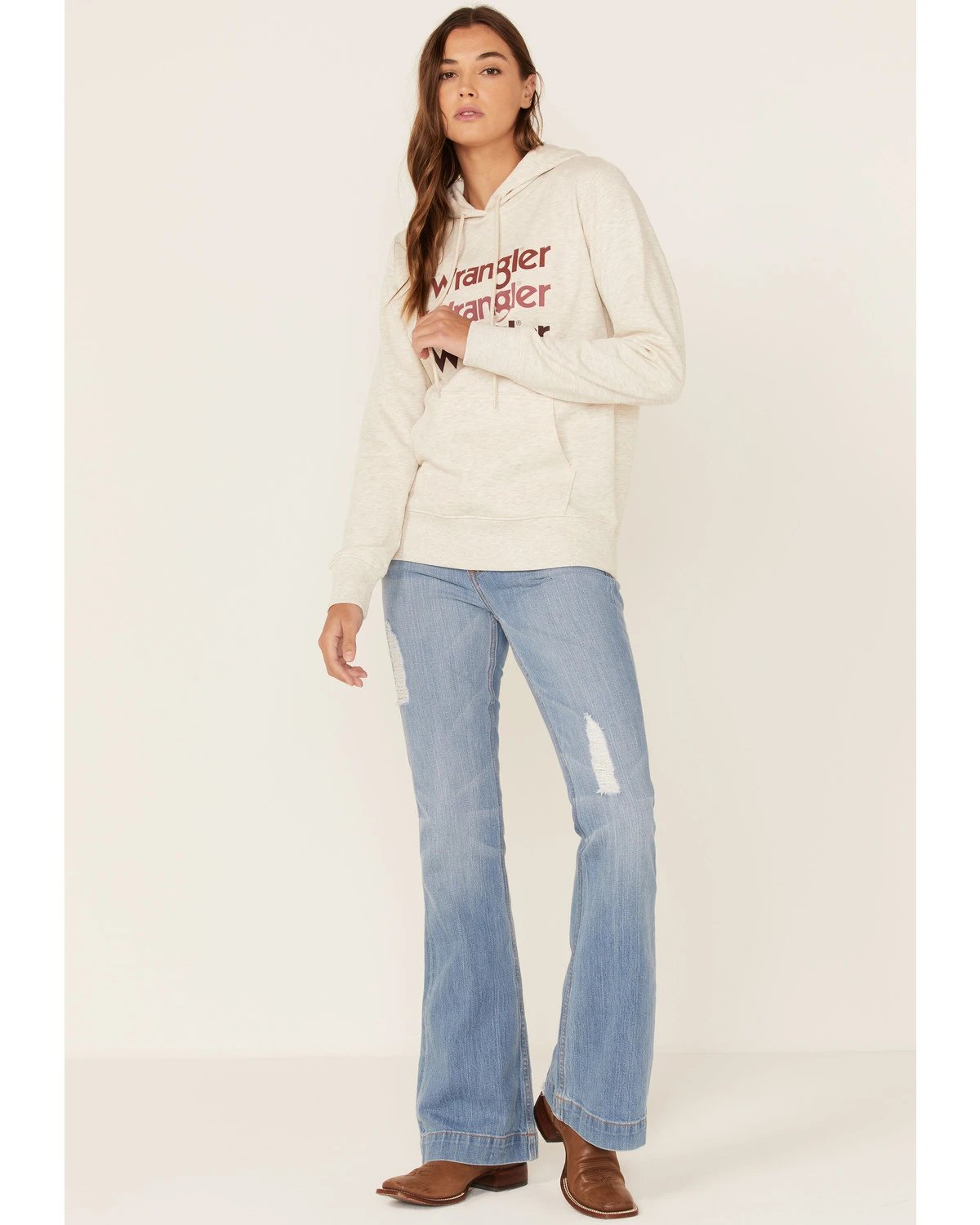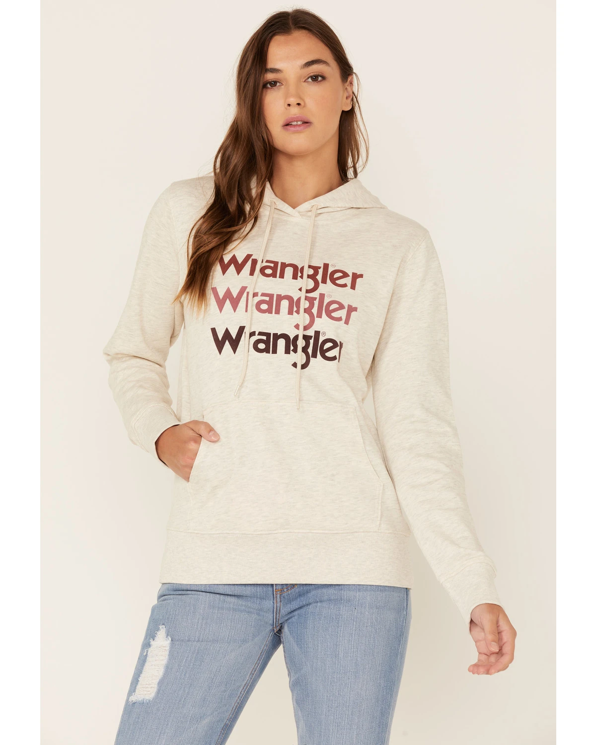 Wrangler Women’s Multi Stacked Logo Shirttail Pullover Hoodie
